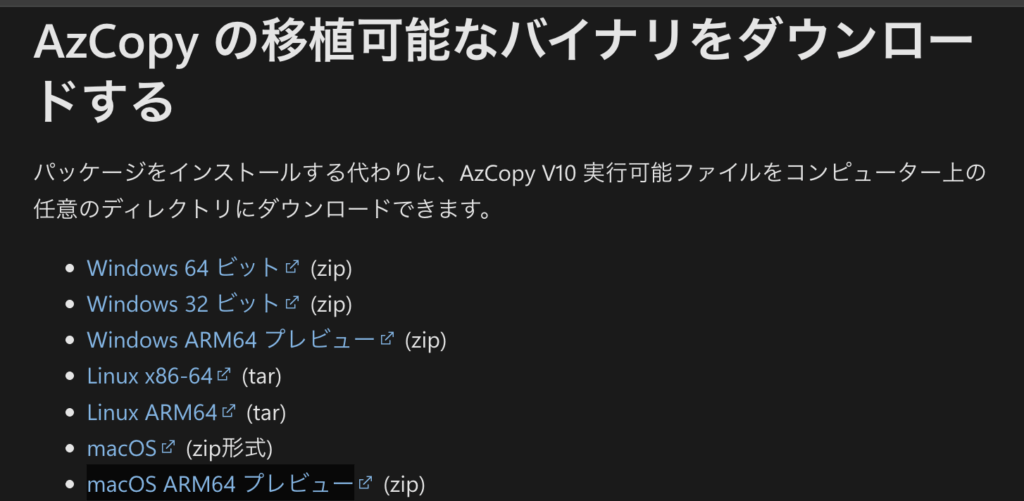 # Apple Silicon用のAzCopyを直接ダウンロード