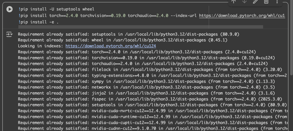 !pip install torch==2.4.0 torchvision==0.19.0 torchaudio==2.4.0 --index-url https://download.pytorch.org/whl/cu124